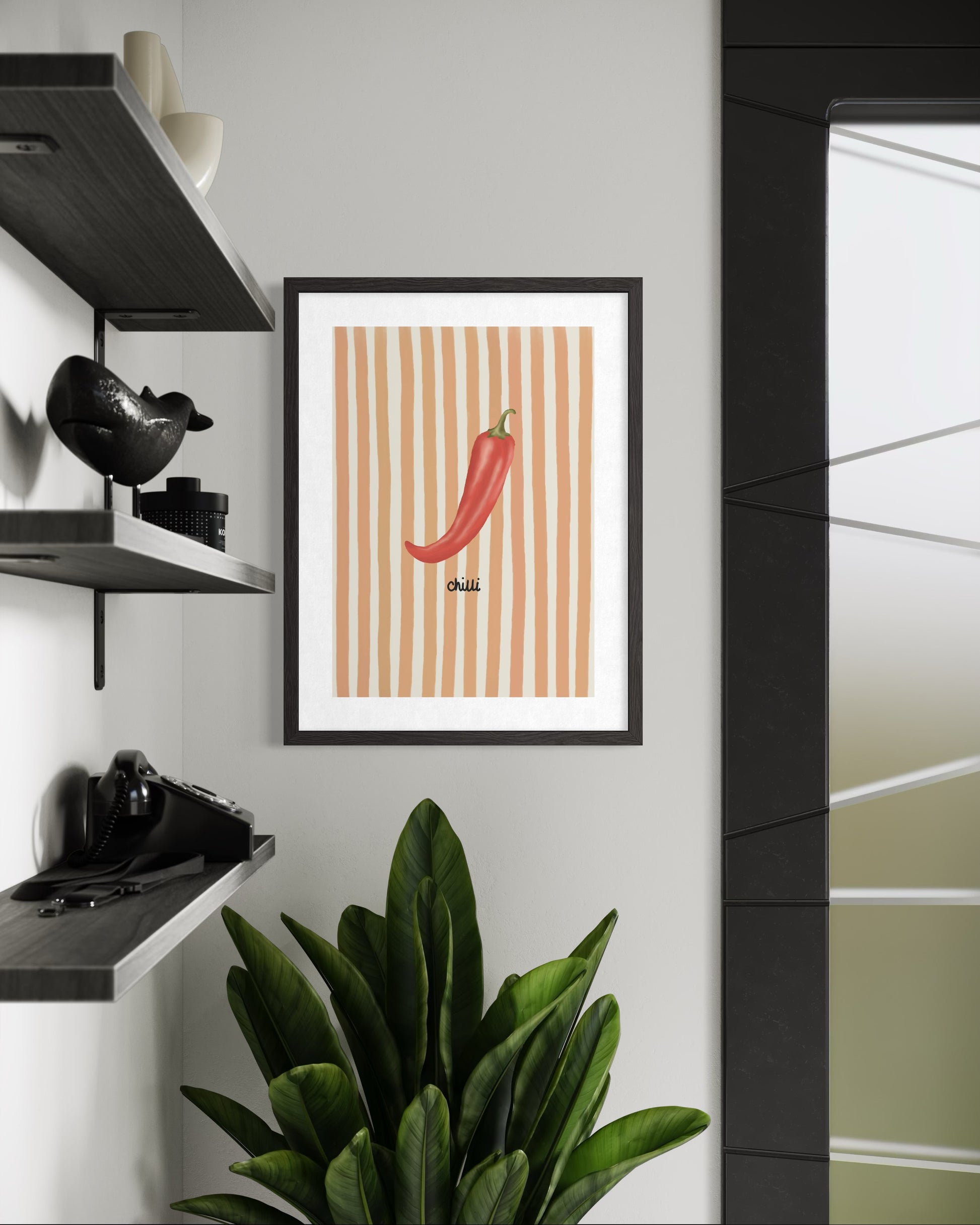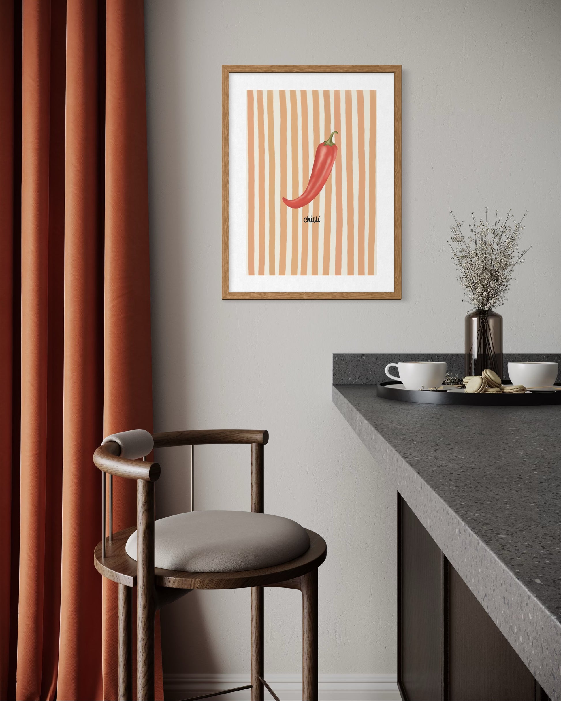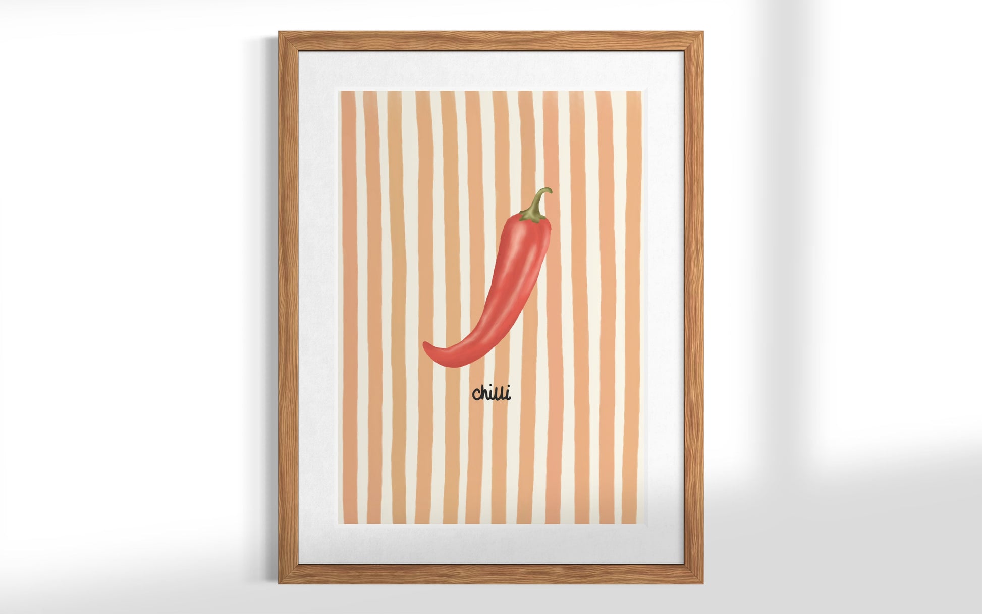 Add a dash of spice to your kitchen with this vibrant Chilli print. It celebrates the fiery kick that transforms ordinary meals into unforgettable flavours. Let this playful piece inspire your culinary adventures and remind you that a little heat can make all the difference