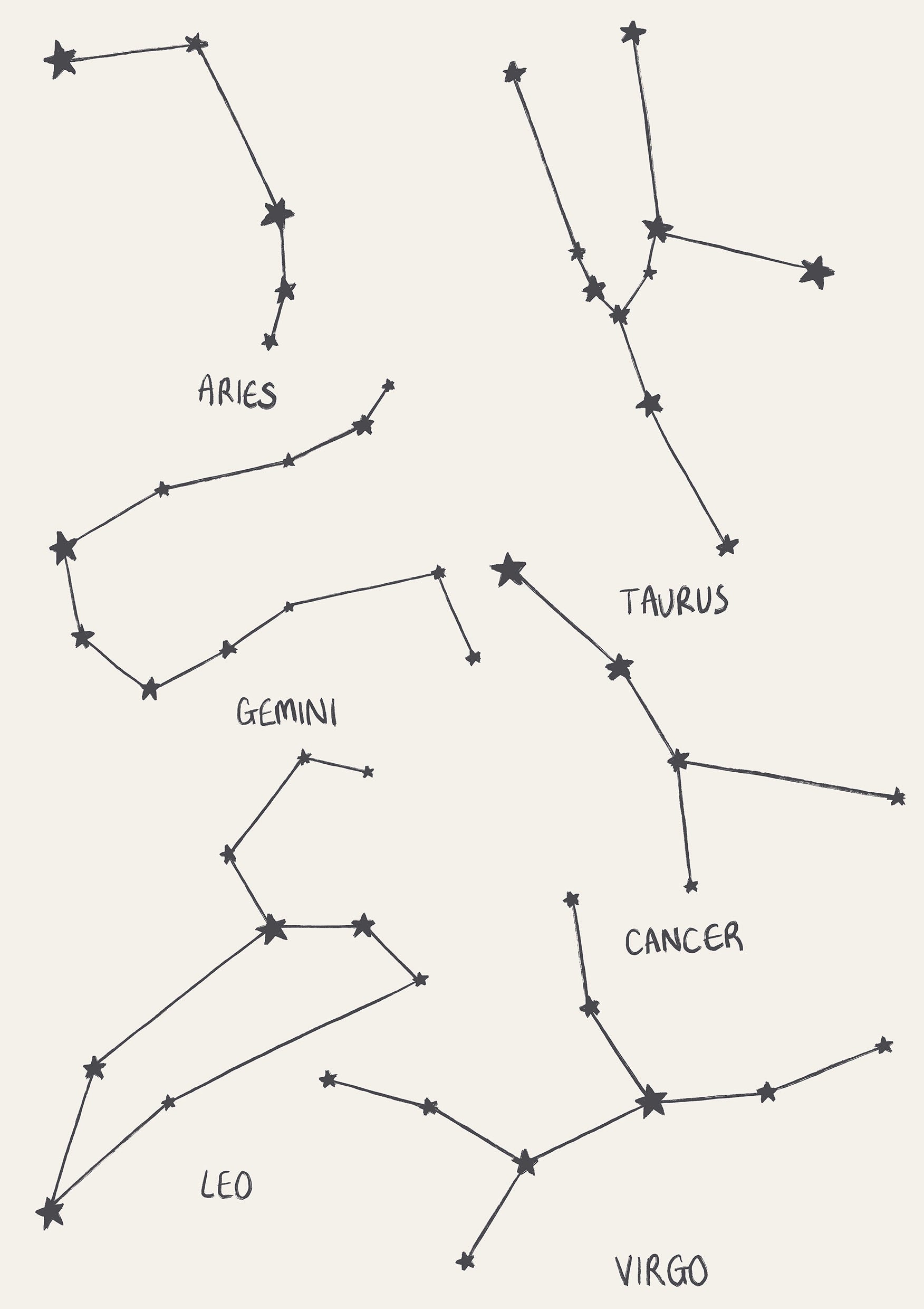 Aries (March 21–April 19), Taurus (April 20–May 20), Gemini (May 21–June 20), Cancer (June 21–July 22), Leo (July 23–August 22), Virgo (August 23–September 22), Libra (September 23–October 22), Scorpio (October 23–November 21), Sagittarius (November 22–December 21), Capricorn (December 22–January 19), Aquarius (January 20–February 18), Pisces (February 19–March 20)