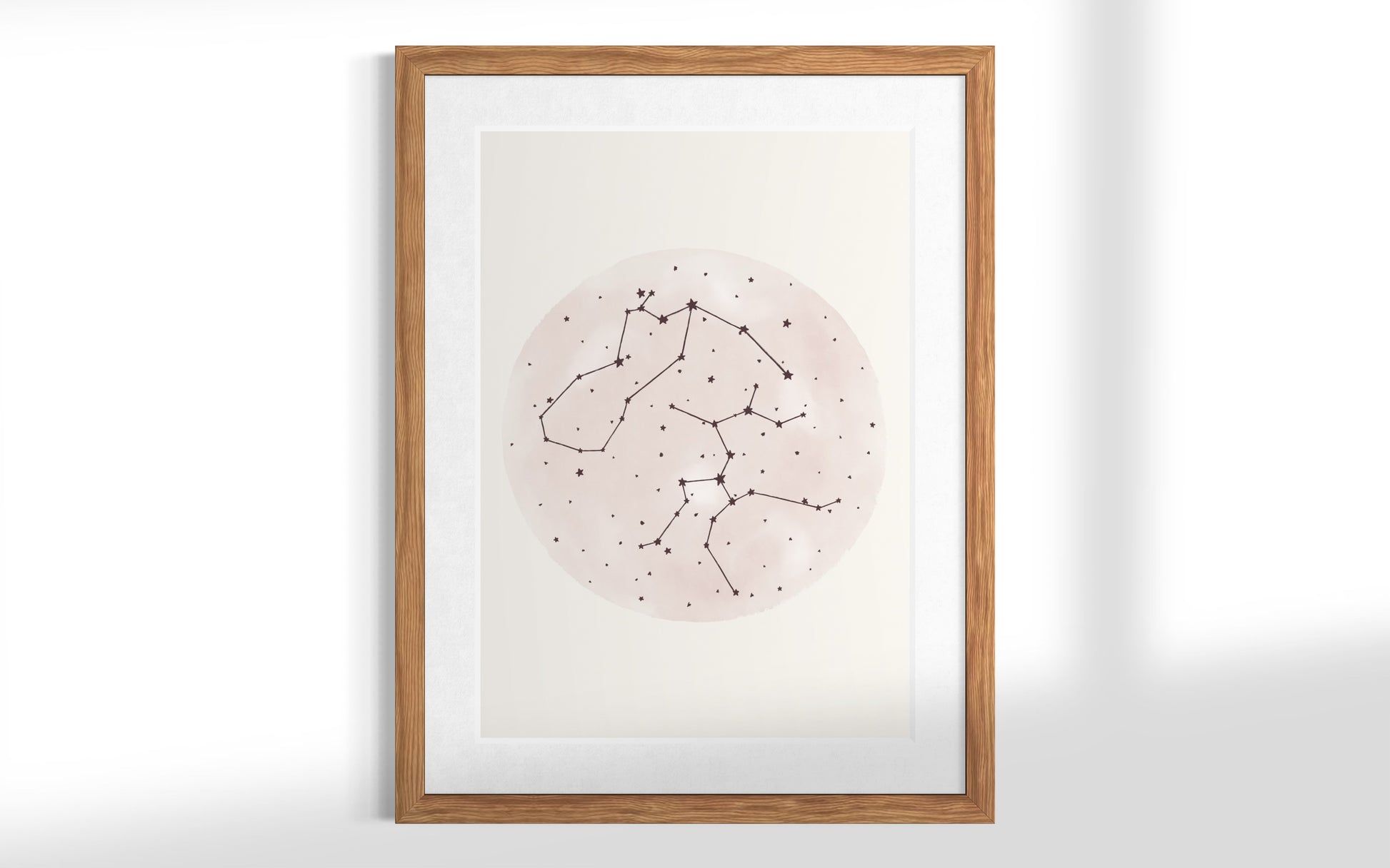 Discover your cosmic connection with this personalised zodiac constellation print. Select your own star sign and a loved one's to create a truly unique piece. Perfect for couples, best friends, or family members who share a passion for the stars