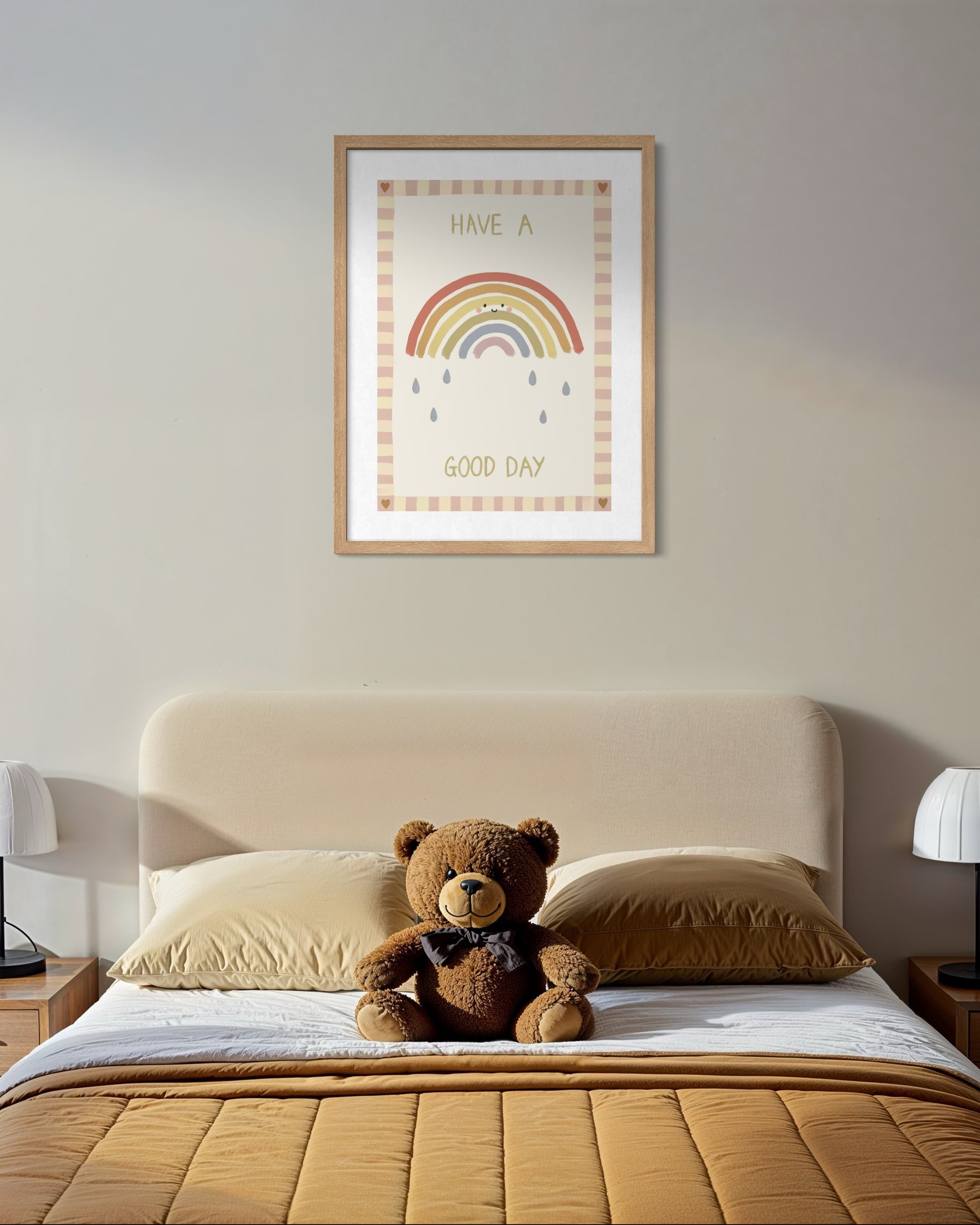 This playful design helps create a happy, welcoming space that inspires positivity every day. Perfect for brightening up any kids’ room with some fun and colour