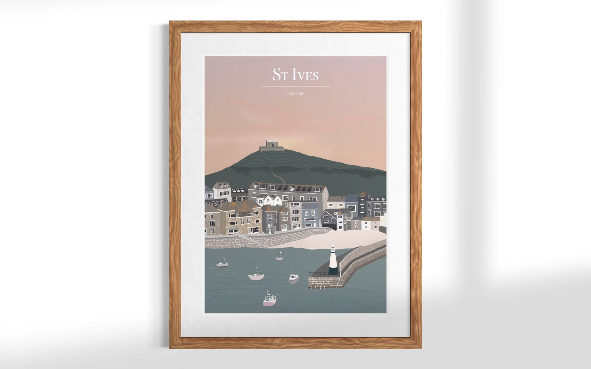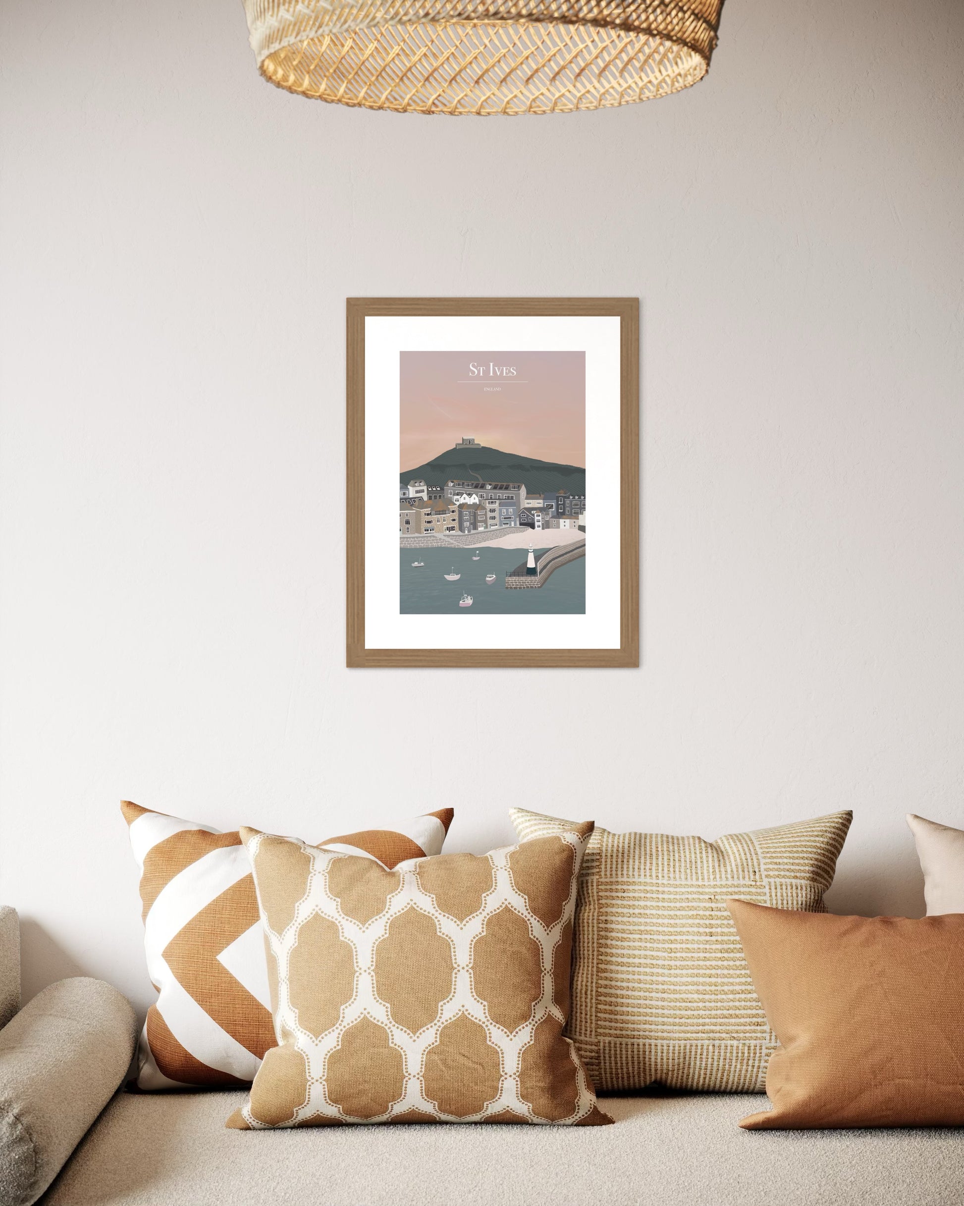 Bring the soothing glow of a St Ives sunset into your home with this print. Perfectly capturing holiday calm, its warm colours and coastal charm invite you to relax and daydream of peaceful beach evenings anytime you glance its way